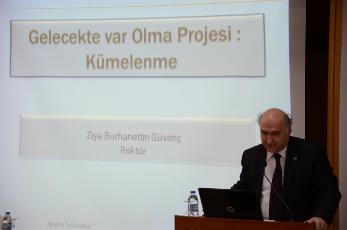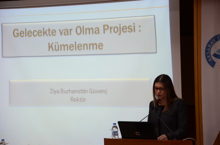 Çankaya Üniversitesi Kültür İşleri Müdürü Melis Fırat’ın Takdim konuşmasında ise Çankaya Üniversitesi Rektörü Ziya Burhanettin Güvenç’in akademik kariyerinin yanı sıra üniversite sanayi işbirliği kapsamında ve kümelenme alanında yaptığı çalışmalar özetlendi. Çankaya Üniversitesi Rektörü Prof. Dr. Ziya Güvenç ise “Geleceği Kurtarma Projesi: Kümelenme” adlı konferansında, kümelenme nedir, neden gereklidir, önemli aktörleri kimlerdir, neler yapılmalıdır gibi konuları ele alarak, sektörlerimizin Nano teknolojinin gelişimi ve gelecek teknoloji tufanına karşı ayakta kalabilmelerinin tek yolunun kümelenmekten geçtiğini belirtti. Kümelenmenin özünün kültürümüzdeki “komşusu aç iken tok yatan bizden değildir” sözü tarafından içerildiğini belirten Güvenç, dünyadaki kümelenme örneklerinden, Çankaya Üniversitesinin öncülük yaptığı ve kendisinin başkanlığını yaptığı Ankara OSTİM Organize Sanayi Bölgesinde bulunan kümelerden örnekler vererek, kendisinin de memleketi olan Aksaray’da başlatılacak kümelenme çalışmalarına katkıda bulunmaktan memnunluk duyacağını belirtti. Güvenç, bu yönde Ahiler Kalkınma Ajansı ile birlikte bir çalışma yürütüldüğünü ve bu çalışmanın Aksaray Üniversitesi, Aksaray Ticaret ve Sanayi Odası, yerel yönetimler, Kamu kurumları ve firmalarımızın da teveccüh göstermesi ile başarıya ulaşılabileceğini ifade etti.